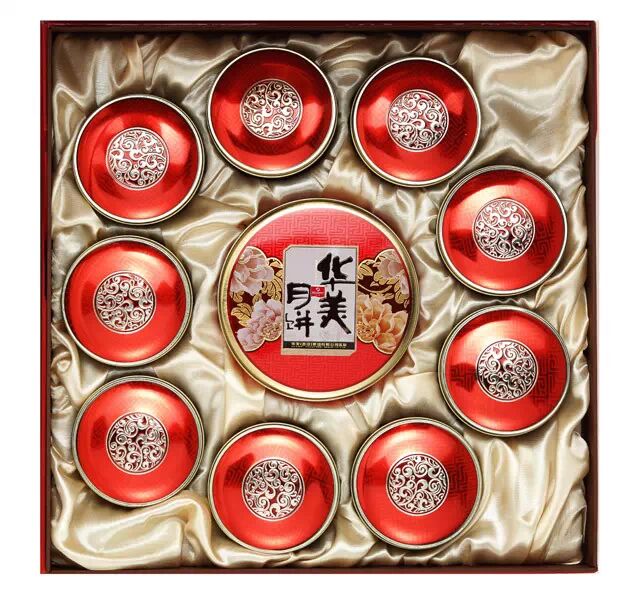 古典优雅的中国红大气又喜庆,烫金的条纹分割不失品味,印章式古典品牌标志更显中国风特色,盒内独立小包装更是选用复古的铁盒材质,圆形的铁盒造俏皮又不失品味,布置更是别具匠心,诸多小月饼众星捧月般围绕着一个大月饼,这么别致的一款月饼,还不快点下手嘛!